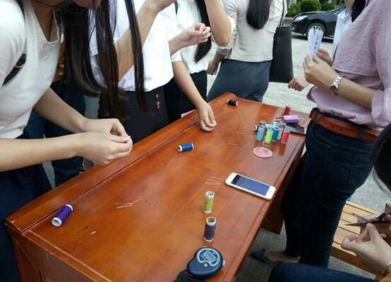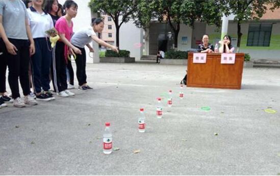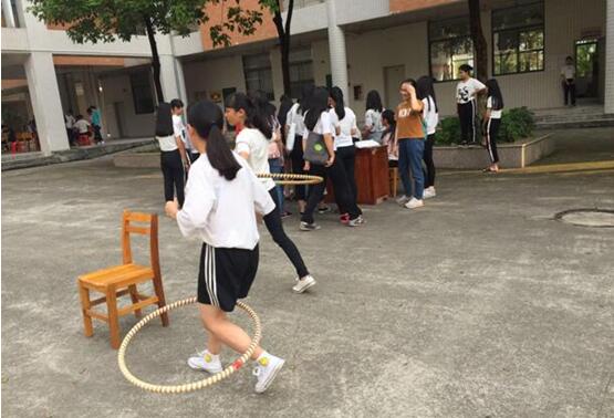 本次游園活動(dòng)共有八個(gè)游戲項(xiàng)目:跳繩、踢毽子、呼啦圈等。其中,最受歡迎的是“拋圈”游戲。女生們排起長(zhǎng)長(zhǎng)的隊(duì)伍,玩得不亦樂乎。