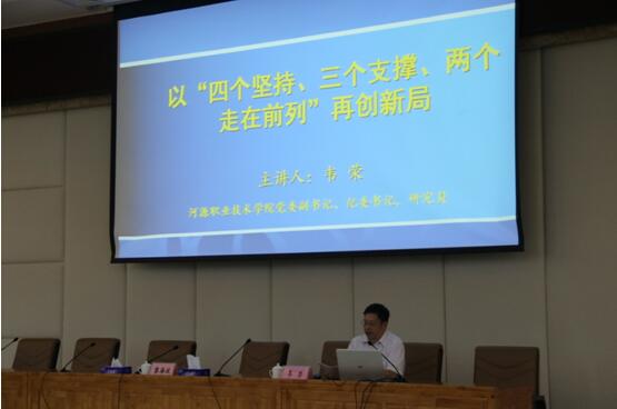 韋榮書記強(qiáng)調(diào),習(xí)近平總書記重要批示精神核心在于“四個堅持、三個支撐、兩個走在前列”,“四個堅持”是旗幟、方向和原則;“三個支撐”是使命擔(dān)當(dāng)和發(fā)展路徑;“兩個走在前列”是奮斗目標(biāo)。他詳細(xì)分析了重要批示精神的核心內(nèi)容,結(jié)合職業(yè)院校實際,提出了很多中肯的建議,如堅持中國特色社會主義辦學(xué)方向,以立德樹人為根本,把思想政治工作貫穿教育教學(xué)全過程;深化教育教學(xué)改革,對接產(chǎn)業(yè)設(shè)專業(yè)等。