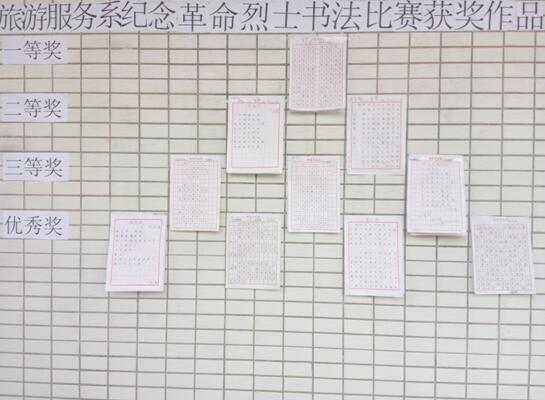 為緬懷革命先烈,繼承革命先烈的光榮傳統(tǒng),弘揚愛國主義精神。旅游服務系舉辦“紀念革命烈士”書法比賽。