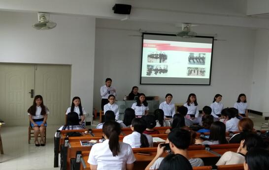 答辯會主要圍繞企業(yè)的實際會務(wù)活動工作,以各項表彰大會、慶典、剪彩、簽約、校園招聘會等重大活動為背景進(jìn)行全程的策劃與籌辦。學(xué)生們以小組為單位派代表進(jìn)行禮儀展示、PPT演示文稿匯報與答辯的方式展示成果。