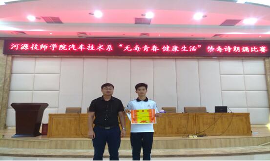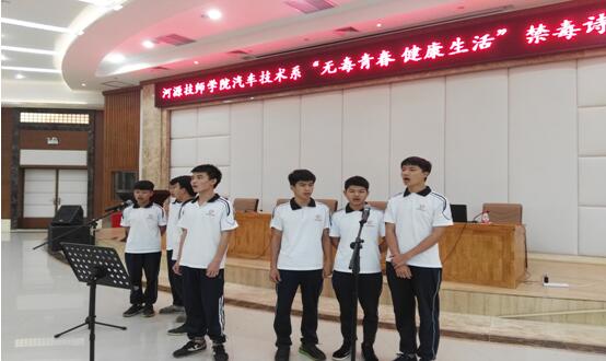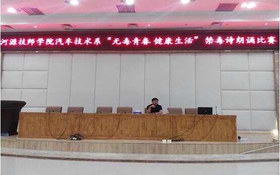為進一步加強我院禁毒教育工作,提高廣大師生對毒品犯意識,推動創(chuàng)建“平安校園”活動,汽車技術(shù)系于2017年6月21日在圖書館報告廳舉辦了“無毒青春 健康生活”詩朗誦比賽。汽車技術(shù)系主任石功名、團總支書記鄭文富及全體師生參加了此次活動。
