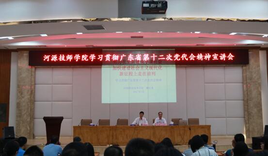根據(jù)《關于做好省第十二次黨代會精神宣傳工作的通知》(河委辦發(fā)電〔2017〕98號)精神,為引導學院廣大教職工深入學習貫徹黨代會精神,2017年7月4日上午,我院在圖書館報告廳召開了學習貫徹廣東省第十二次黨代會精神宣講會。學院領導班子成員出席,全體教職工參加了會議。