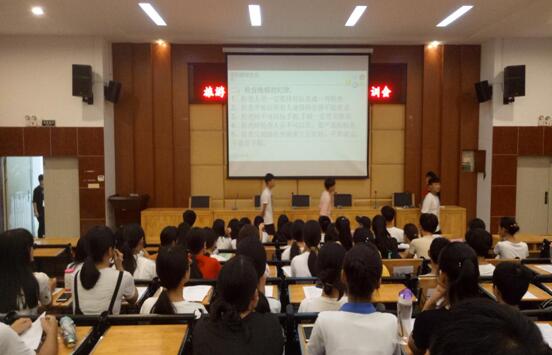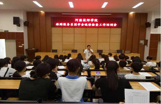 近日,旅游服務(wù)系團(tuán)學(xué)會(huì)開展了納新,40多名新成員加入了團(tuán)學(xué)會(huì)的大家庭。為進(jìn)一步加強(qiáng)團(tuán)學(xué)會(huì)干部的凝聚力,更好地規(guī)范晚修檢查工作,2017年9月29日下午,旅游服務(wù)系團(tuán)學(xué)會(huì)在培訓(xùn)樓講學(xué)廳召開了晚修檢查等日常規(guī)范性工作培訓(xùn)會(huì)。旅游服務(wù)系副主任陳偉寧老師、團(tuán)總支書記曾曉君老師以及2016屆、2017屆團(tuán)學(xué)會(huì)干部共80余人參加了這次會(huì)議。