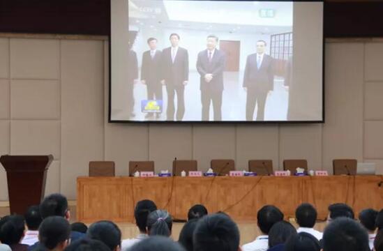 儀式開始前,全體黨員集體觀看了習(xí)近平總書記及新一屆常委瞻仰中共一大會(huì)址,重溫入黨誓詞新聞視頻。