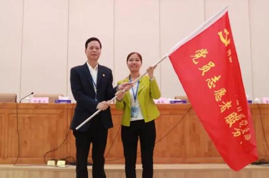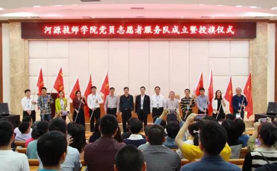 接著,舉行了莊重而熱烈的黨員志愿者服務(wù)隊(duì)成立暨授旗儀式。黎海波書記分別為9支黨員志愿者服務(wù)隊(duì)(機(jī)電制造系黨支部、藝術(shù)設(shè)計(jì)系黨支部、信息技術(shù)系黨支部、電氣應(yīng)用系黨支部、汽車技術(shù)系黨支部、公共教育系黨支部、經(jīng)濟(jì)貿(mào)易系黨支部、旅游服務(wù)系黨支部、工勤黨支部)授旗。