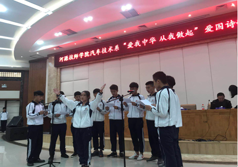 為加強學生愛國教育,增強學生的民族自尊心和自豪感,樹立學生愛國、愛校、愛家的良好風尚,增強學生集體意識和榮譽感。汽車技術系于2017年11月13日在圖書館報告廳舉辦了“愛我中華·從我做起”詩朗誦比賽。汽車技術系副主任張洪軍、團總支書記鄭文富及全體師生參加此次活動。