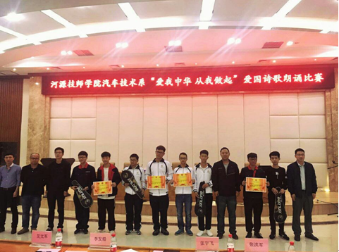 此次愛國詩歌朗誦活動為同學們提供了一個展示自我的平臺,豐富了同學們的課余生活,同時也展示了汽車學子的青春活力與夢想,激發(fā)同學們的愛國熱情,增強了同學們勇于擔當歷史使命感和責任感。