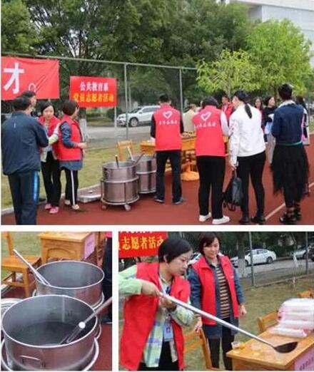 公共教育系黨支部黨員志愿者服務(wù)隊在學(xué)院第十三屆田徑運動會上為老師、學(xué)生運動員送上愛心涼茶和水果,并照顧受傷運動員。