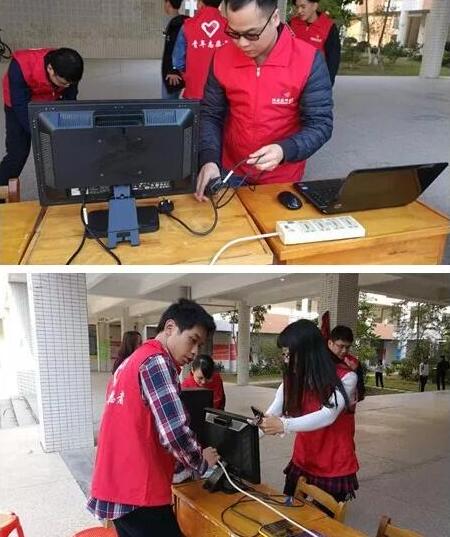 信息技術(shù)系黨支部黨員志愿者服務(wù)隊及學(xué)生志愿者在學(xué)院八號樓廣場開展維修電腦、重裝系統(tǒng)、軟件殺毒升級等志愿服務(wù)活動。