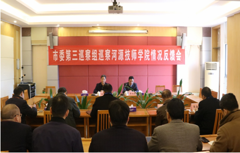 根據(jù)河源市委巡察工作統(tǒng)一部署,河源市委第三巡察組對(duì)河源技師學(xué)院的巡察工作已經(jīng)結(jié)束。2018年1月11日上午,河源市委第三巡察組巡察河源技師學(xué)院工作情況反饋會(huì)在河源技師學(xué)院一號(hào)樓大會(huì)議室召開。市委組織部副部長陳煒同志、市委第三巡察組組長李文波同志、學(xué)院領(lǐng)導(dǎo)班子及各科室負(fù)責(zé)人參加了會(huì)議。
