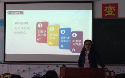 培訓(xùn)中,張崳玉老師通過深入淺出的講解,讓教師們了解并掌握如何選題、如何申報、如何調(diào)查研究;羅衛(wèi)職老師通過分享自身的經(jīng)歷,為老師們總結(jié)了做一名好教師的標(biāo)準(zhǔn)和經(jīng)驗(yàn);劉智慧老師結(jié)合自己平時制作課件的情況,為老師們梳理出高效制作課件的流程和方法途徑,并進(jìn)行實(shí)例演示和資源共享;謝麗娟老師則從心理學(xué)專業(yè)角度,為老師們指明了教師心理壓力的來源,并提出相應(yīng)減壓的方法。