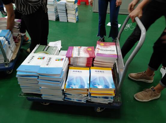 經(jīng)過一天的努力,同學(xué)們順利把教材全部送到了各個班級。其中一個同學(xué)說:這次活動既能讓我們體驗到入庫、分揀、配送等各項專業(yè)崗位職能的實際操作,又能服務(wù)于系部,真的十分有意義。