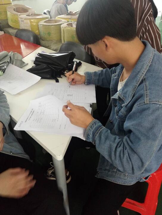(圖四)學(xué)生在認真核對入庫單,以及填寫其他表格