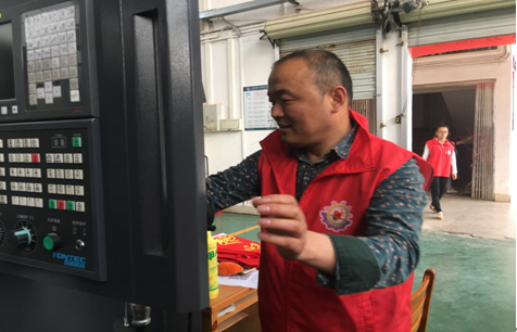 機(jī)電制造系黨支部全體黨員穿上服裝,佩戴好黨徽,為加工中心實(shí)訓(xùn)車(chē)間進(jìn)行了一次徹底的清潔維護(hù),不放過(guò)任何一個(gè)垃圾死角,認(rèn)真擦拭每臺(tái)機(jī)床,擺放整齊所有加工工具。正在集訓(xùn)的學(xué)生看到老師們?nèi)绱苏J(rèn)真,也紛紛動(dòng)起手來(lái),與老師們一起將加工中心實(shí)訓(xùn)車(chē)間清潔得格外整齊、明亮。