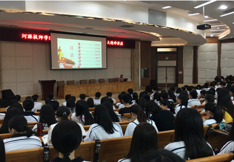 賴珊珊老師以學(xué)習(xí)貫徹黨的十九大精神和習(xí)近平新時代中國特色社會主義思想為中心,系統(tǒng)學(xué)習(xí)了以新時代中國特色社會主義的深刻變革、偉大實踐、理論指導(dǎo)、基本方略、戰(zhàn)略安排、行動綱領(lǐng)、堅強領(lǐng)導(dǎo),讓老師同學(xué)們更加深入認(rèn)識、學(xué)習(xí)黨的十九大精神。賴珊珊老師鼓勵同學(xué)們從建設(shè)兩個“河源”找準(zhǔn)自己的人生定位,奮發(fā)勇為,不負(fù)時代使命和當(dāng)擔(dān), 做好十九大精神的踐行者,扣好走向社會的第一??圩?,腳踏實地,不忘初心,牢記使命!