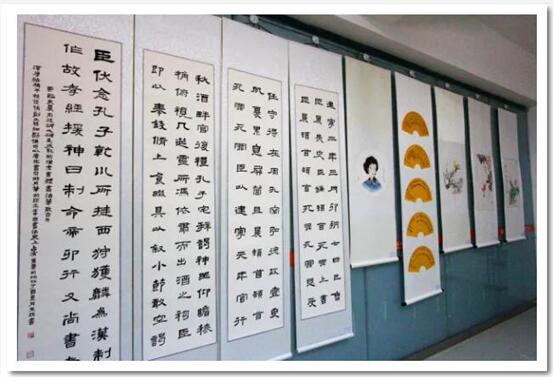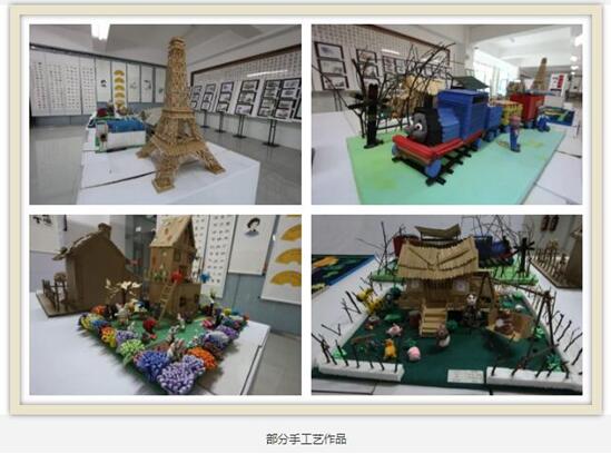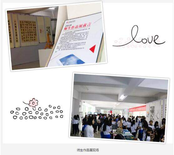 圖書館收集師生優(yōu)秀作品在二樓內(nèi)大廳展示。此次展覽共有作品195幅,其中書畫作品37幅、書簽設(shè)計(jì)42幅、海報(bào)設(shè)計(jì)41幅、服裝畫75幅,現(xiàn)場還展示了多件幼兒教育專業(yè)學(xué)生的手工藝作品。
