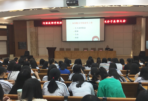 為做好今年的招生工作,進(jìn)一步擴(kuò)大我院的招生宣傳力度, 2018年4月27日晚,經(jīng)濟(jì)貿(mào)易系在圖書館報告廳召開招生動員會暨招生積極分子表彰大會。經(jīng)濟(jì)貿(mào)易系副主任歐曉燕、曾曉莉,經(jīng)濟(jì)貿(mào)易系全體班主任及學(xué)生共同參加此次會議。會議由歐曉燕老師主持。