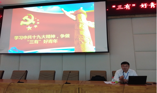 石功名書記向同學們介紹了十九大的概況。黨的十九大報告中,習近平總書記對青年一代寄予殷切期望,提出新時代“三有”好青年的要求。石功名書記主要就“三有”好青年做了清晰的講解。一是有理想,做新時代的熱血青年。以實現(xiàn)個人理想為抓手,力促實現(xiàn)偉大復興的中國夢。二是有本領,做新時代的優(yōu)秀青年。學習是成長進步的階梯,實踐是提高本領的途徑。青年要練就過硬的本領,牢記“立身百行,以學為基”的道理,緊跟時代步伐,把學習當作一種責任和追求。三是有擔當,做新時代的有為青年。習近平同志曾說過“干部要有擔當,有多大擔當才能干多大事業(yè),盡多大責才會有多大成功”,同學們要勇于挑擔,牢記使命,奮發(fā)有為。
