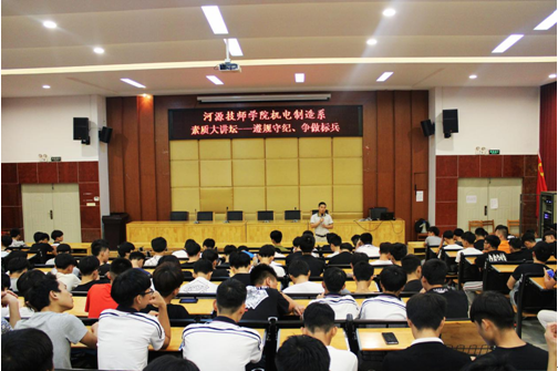 為強(qiáng)化學(xué)生紀(jì)律意識(shí),提高學(xué)生自覺(jué)遵守規(guī)章制度,爭(zhēng)做一名合格技校生。2018年6月5日晚,學(xué)院在培訓(xùn)樓講學(xué)廳舉辦題為“遵規(guī)守紀(jì)、爭(zhēng)做標(biāo)兵”人文素質(zhì)講座。講座由機(jī)電制造系黃志平老師主講,機(jī)電制造系各班主任以及2017級(jí)全體學(xué)生參加。