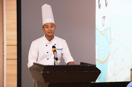 (圖四)客家金牌師傅、河源技師學院烹飪專業(yè)教師謝志海發(fā)言