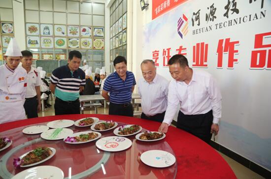 2018年10月30日上午,我市“客家菜師傅”人才培養(yǎng)基地在河源技師學院揭牌,這標志著我市正式啟動實施“客家菜師傅”工程,著力促進城鄉(xiāng)勞動者技能就業(yè)、技能致富,全面提升就業(yè)創(chuàng)業(yè)水平,助推鄉(xiāng)村振興發(fā)展。市委組織部副部長、市人社局局長鄧小強,市人社局副局長羅文才,河源技師學院院長張海鋒出席揭牌儀式,市人社局培訓科科長劉戈文,河源市餐飲行業(yè)協(xié)會副會長陳建成,來自餐飲企業(yè)的領(lǐng)導嘉賓、客家菜師傅,以及河源技師學院領(lǐng)導班子成員、烹飪專業(yè)師生等參加了儀式。