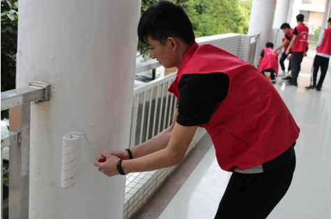 3月18日下午,美化校園活動在機(jī)電制造系團(tuán)總支的組織部署下,團(tuán)學(xué)干部、團(tuán)員志愿者、學(xué)生志愿者利用課外活動時間,備好白漆、相關(guān)工具對7號樓樓梯上下兩旁墻壁、走廊旁立柱、6號樓實(shí)訓(xùn)工廠門口墻壁等多處進(jìn)行粉刷。通過一個多小時的辛勤勞動,粉刷過后的墻壁煥然一新,同學(xué)們也因?yàn)樽约旱母冻龈惺艿椒?wù)帶來的快樂,喚醒了其他同學(xué)對校園環(huán)境愛護(hù)意識,營造了良好的氛圍。