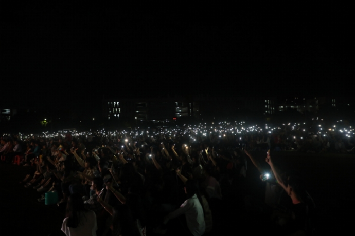 表演過(guò)程中,學(xué)生們自覺(jué)地舉起手中的手機(jī),用手機(jī)的光代替星光,給你們點(diǎn)亮最閃耀的舞臺(tái),讓你們光芒綻放。