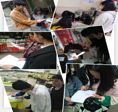 活動(dòng)中,全體同學(xué)對(duì)商業(yè)街來(lái)往的學(xué)生、居民,商鋪的店主進(jìn)行了問(wèn)卷調(diào)查,調(diào)查共完成問(wèn)卷100余份,可用問(wèn)卷100份。然后,在陳老師的指導(dǎo)下完成問(wèn)卷的統(tǒng)計(jì)、數(shù)據(jù)的分析以及報(bào)告的撰寫工作。