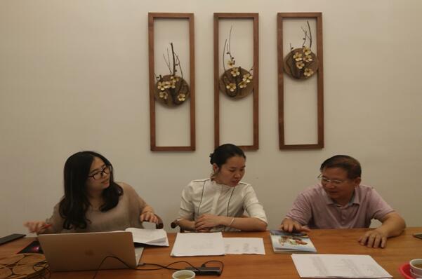 (圖一)梁秋生副院長、梁自敏老師與大埔小吃文化城的培訓(xùn)老師討論