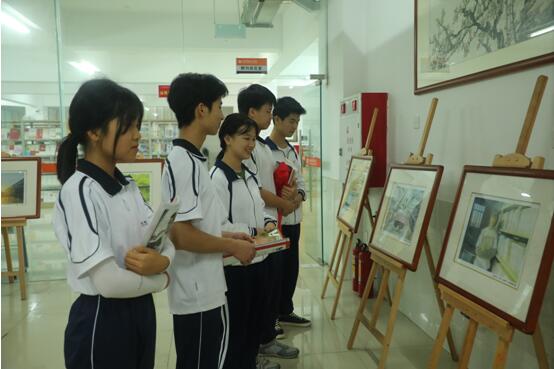 (圖六)同學(xué)們?cè)趨⒂^書(shū)畫(huà)攝影展