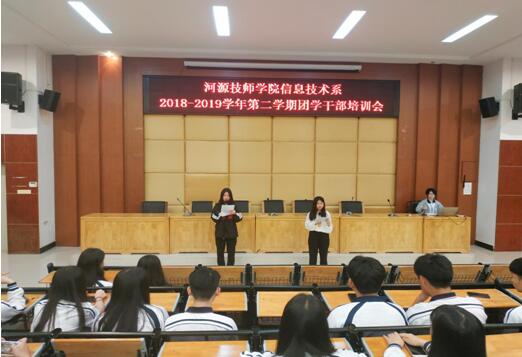 為加強信息技術(shù)系團學(xué)干部的溝通交流能力,全面提高團干的綜合素質(zhì),信息技術(shù)系于2019年5月6日晚在培訓(xùn)樓講學(xué)廳舉辦了2018-2019學(xué)年第二學(xué)期團學(xué)干部培訓(xùn)會。信息技術(shù)系副主任巫騎偉、李曉聰老師出席,信息技術(shù)系全體團學(xué)干部參加了培訓(xùn)。