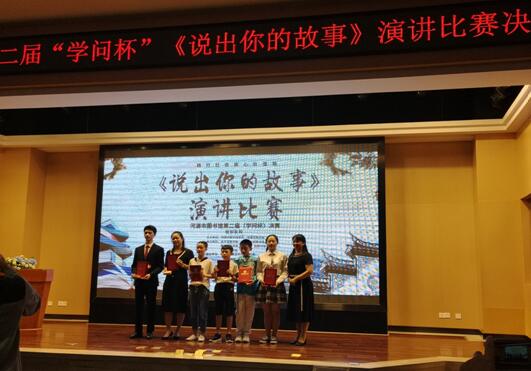 2019年5月5日下午,河源市圖書館第二屆“學(xué)問杯”《說出你的故事》演講比賽圓滿結(jié)束。本次比賽由河源是由河源市圖書館學(xué)會、河源市圖書館主辦,龍川縣、東源縣、連平縣、紫金縣圖書館和(院)校圖書館共同承辦,分別設(shè)置了少年和成人兩個參賽組別。我院參賽代表17幼師2班陳婷同學(xué)榮獲少年組三等獎。