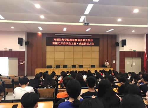 為進(jìn)一步加強(qiáng)學(xué)生就業(yè)指導(dǎo)工作,增強(qiáng)學(xué)生擇業(yè)意識(shí),轉(zhuǎn)變學(xué)生就業(yè)觀念,從而更好地應(yīng)對嚴(yán)峻的就業(yè)形勢,2019年5月16日下午,經(jīng)濟(jì)貿(mào)易系在培訓(xùn)樓講學(xué)廳開展“開啟事業(yè)之窗成就快樂人生”主題就業(yè)講座。講座由經(jīng)濟(jì)貿(mào)易系副主任曾曉莉主講,該系2020屆準(zhǔn)畢業(yè)生參加了本次講座。