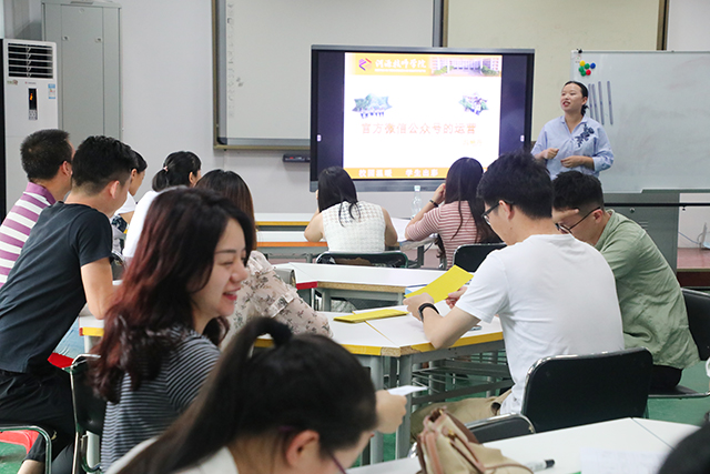 為了提高各系微信公眾號的運營水平,提升各系專業(yè)的特色宣傳成效,進一步傳播校園正能量,2019年5月30日下午,我院在實訓(xùn)工廠汽車智慧教室舉行微信公眾號運營的專題培訓(xùn)。各系正副主任、各科室宣傳員、各系辦事員、各系微信公眾號負責(zé)人參加了此次培訓(xùn)。培訓(xùn)由學(xué)院辦公室的馮艷丹老師主講。