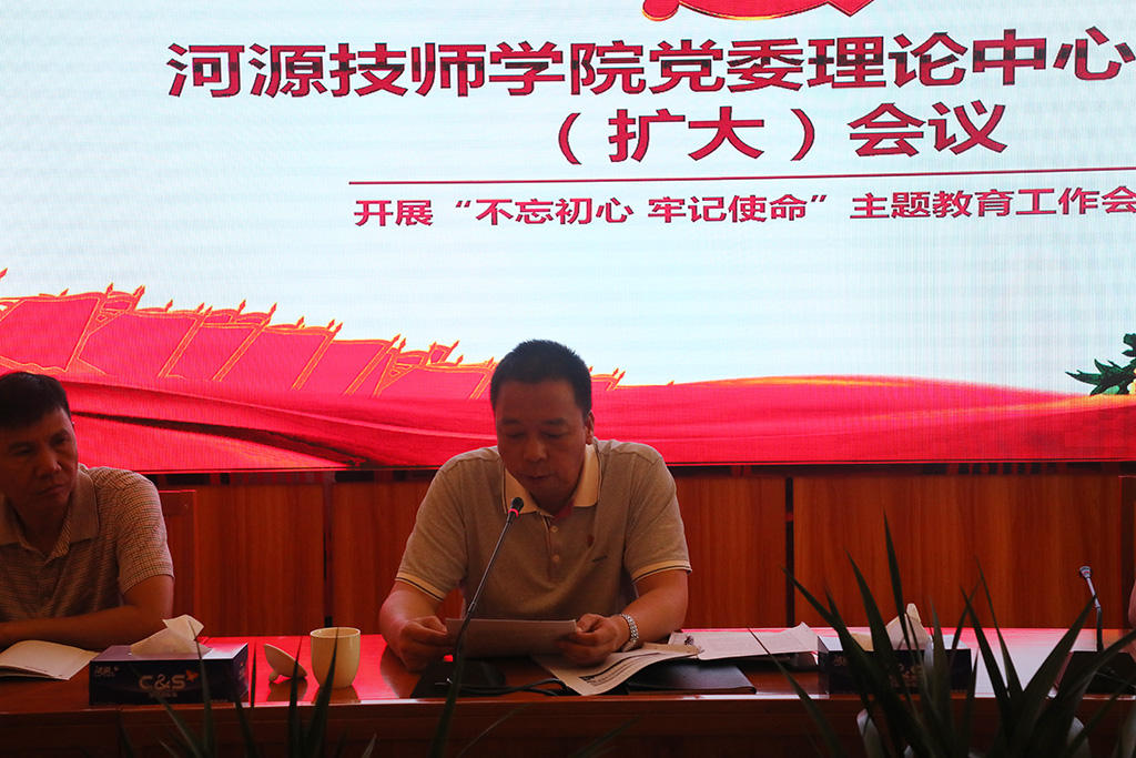 2019年5月29日上午,我院在一號(hào)樓大會(huì)議室召開理論中心組學(xué)習(xí)(擴(kuò)大)會(huì)議,傳達(dá)學(xué)習(xí)“不忘初心 牢記使命”主題教育工作會(huì)議精神。學(xué)院黨委會(huì)委員、各黨支部書記、中層管理干部和各教學(xué)系正、副主任參加了會(huì)議。