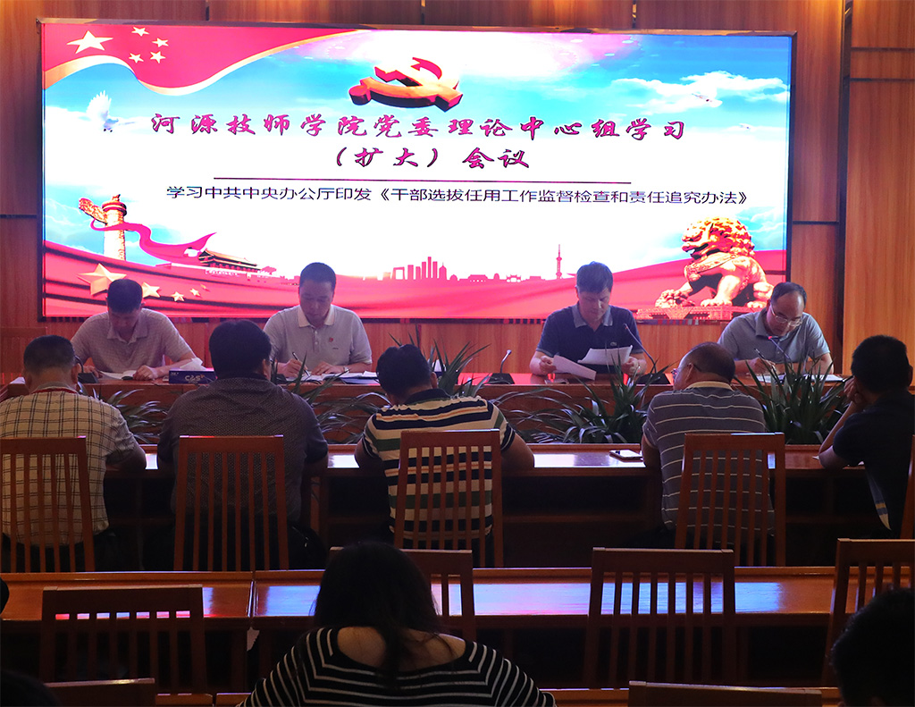 2019年5月29日上午,我院在一號樓大會議室召開理論中心組學習(擴大)會議,傳達學習《干部選撥任用工作監(jiān)督檢查和責任追究辦法》(以下簡稱《辦法》)精神。學院黨委會委員、各黨支部書記、中層管理干部和各教學系正、副主任參加了會議。