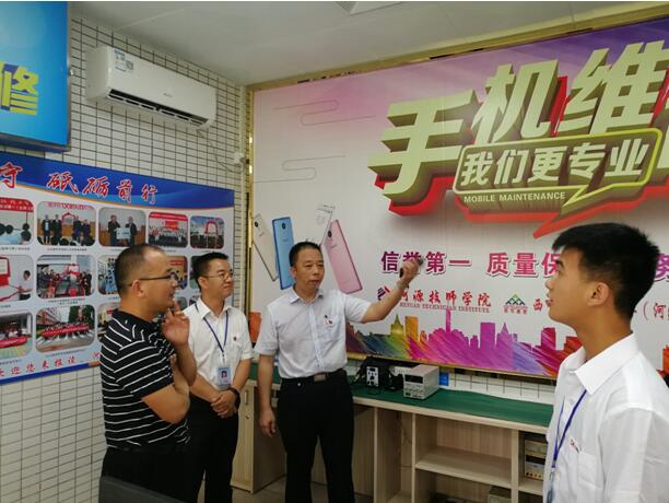 2019年6月18日上午,我院“西可維修驛站”在9號(hào)樓揭牌成立。院長(zhǎng)張海鋒、電氣應(yīng)用系主任張雪峰、副主任谷瑞光、西可經(jīng)理李海華共同為“西可維修驛站”揭牌,招生就業(yè)科科長(zhǎng)邱志才、培訓(xùn)科科長(zhǎng)鄒坤新、專(zhuān)業(yè)老師張小龍、電子技術(shù)專(zhuān)業(yè)學(xué)生參加了揭牌活動(dòng)。