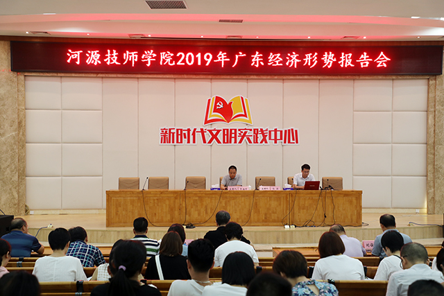 根據(jù)省委部署要求和市委工作安排,2019年6月24日下午,我院在圖書館報告廳舉行了2019年廣東經(jīng)濟形勢報告會。會議邀請河源職業(yè)技術(shù)學院工商管理學院副院長、管理學副教授張穎作專題報告,幫助教職工正確認識和把握當前廣東經(jīng)濟形勢,進一步增強實現(xiàn)“四個走在全國前列”目標的信心和干勁。