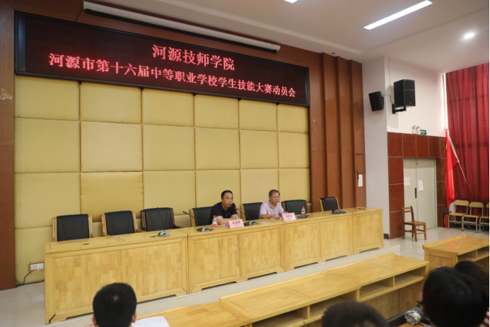 為更好地備戰(zhàn)河源市第十六屆中等職業(yè)學(xué)校學(xué)生技能大賽,再創(chuàng)佳績。2019年8月22日下午,我院在培訓(xùn)樓講學(xué)廳召開技能大賽動員會。學(xué)院黨委書記、院長張海鋒,副院長梁秋生,教務(wù)科副科長徐勇軍,各系主任、教學(xué)副主任及全體指導(dǎo)教師、備賽選手參加了會議。
