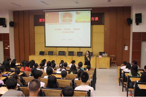 2019年10月8日,經(jīng)濟貿(mào)易系黨支部在培訓(xùn)樓講學(xué)廳舉辦“愛國徽,護國旗,唱國歌”黨建帶團建專題教育課。經(jīng)濟貿(mào)易系黨支部書記劉曉霞同志擔(dān)任此次主題教育課主講老師,該系黨支部組織委員曾曉莉老師、各班團干部和團員共200余人聆聽了專題教育課。