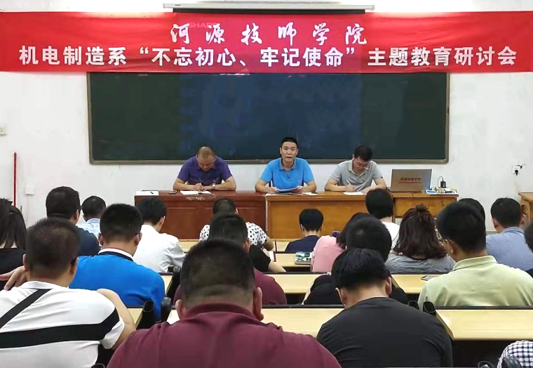 為貫徹落實學院黨委關于開展“不忘初心、牢記使命”主題教育的部署要求,2019年10月14日下午,機電制造系黨支部全體黨員在8號樓104開展主題教育研討會。會議由機電制造系黨支部書記龍衛(wèi)軍同志主持。