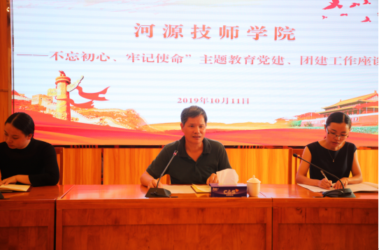為深入開展“不忘初心、牢記使命”主題教育活動,落實學院黨建帶團建的任務,加強黨建帶團建的意識形態(tài)工作,筑牢學生思想防線。2019年10月11日,我院在行政樓大會議室召開“不忘初心、牢記使命”主題教育黨建帶團建座談會。會議由學院副院長張運達同志主持,學院團委書記駱曉紅、學院督導室副主任李輝、學生科副科長柳鐵非以及各系黨支部書記和團總支書記參加了會議。
