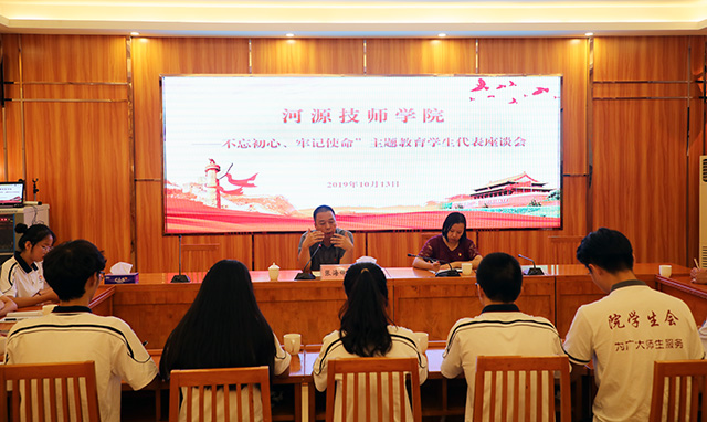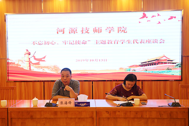 為深入推進(jìn)“不忘初心、牢記使命”主題教育,了解學(xué)生對(duì)學(xué)院黨員教師在校發(fā)揮先鋒模范作用情況,2019年10月13日晚,我院在1號(hào)樓大會(huì)議室召開了“不忘初心、牢記使命”主題教育學(xué)生代表座談會(huì)。學(xué)院黨委書記、院長張海鋒,主題教育工作組成員,學(xué)生代表參加了此次會(huì)議。