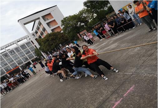 學院八號樓廣場上吶喊聲歡呼聲此起彼伏,比賽的隊伍各就各位,只聽裁判一聲哨響,比賽現場立刻沸騰起來,加油聲此起彼伏,喧囂振耳,大家都卯足了勁,寸土必爭。轉瞬之間,實力懸殊較大的隊伍就會即可分出勝負,而實力均衡的,也會因閃失、經驗等原因而漸見高下。雙方都非常激烈,男生們個個面紅耳赤,青筋爆出,女生也不甘示弱,放下平時淑女的風范使盡渾身力氣,隊員們表情豐富,讓人忍俊不禁,比賽過程高潮迭起,精彩紛呈。