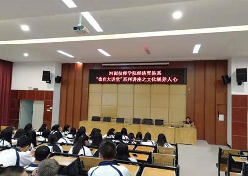 為深入推進(jìn)“不忘初心、牢記使命”主題教育,貫徹落實(shí)學(xué)院關(guān)于“守好德育文化墻,講好德育故事”的立德樹人根本任務(wù),引導(dǎo)學(xué)生弘揚(yáng)和踐行社會(huì)主義核心價(jià)值觀,2019年10月30日晚,經(jīng)濟(jì)貿(mào)易系舉行了“文化滋養(yǎng)人心”主題講座。講座由經(jīng)濟(jì)貿(mào)易系黨員教師賴珊珊主講,經(jīng)濟(jì)貿(mào)易系2019級(jí)全體學(xué)生及班主任聆聽了講座。