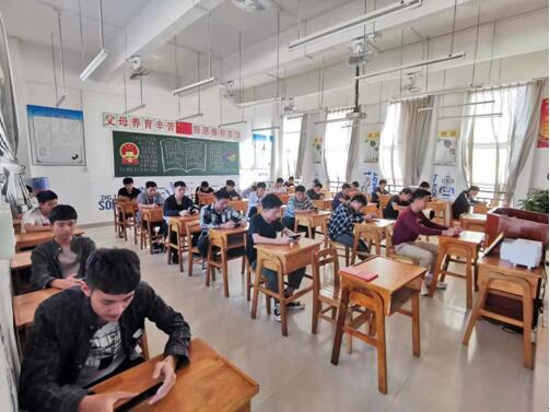 (圖二)機電制造系學(xué)生通過手機學(xué)習(xí)禁毒課件