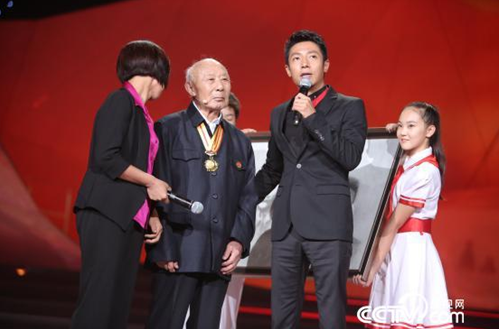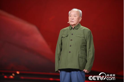 隨后,節(jié)目現(xiàn)場舉行了一次特別的升旗儀式,由國旗班戰(zhàn)士護旗、104歲的老紅軍秦華禮作為先輩的代表升旗,在莊嚴肅穆的國歌聲中,五星紅旗冉冉升起,主持人號召青少年接過老兵的旗幟、走好我們這一代人的長征路,現(xiàn)場激蕩著濃濃的愛國熱情。