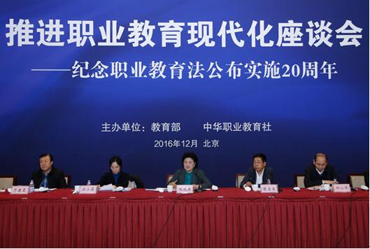 劉延?xùn)|指出,《職業(yè)教育法》頒布20年來,職業(yè)教育快速發(fā)展,辦學(xué)活力持續(xù)增強,建成全球規(guī)模最大職業(yè)教育體系,培養(yǎng)了大批高素質(zhì)勞動者和技能人才,為經(jīng)濟社會發(fā)展作出了重要貢獻。她強調(diào),要圍繞國家發(fā)展和民生需求,堅持服務(wù)大局、育人為本、就業(yè)導(dǎo)向、多元辦學(xué)、依法治教,把職業(yè)教育放在供給側(cè)結(jié)構(gòu)性改革和促進就業(yè)大格局中謀劃,深化教育鏈產(chǎn)業(yè)鏈融合,主動服務(wù)動能轉(zhuǎn)換和產(chǎn)業(yè)升級。要健全體制機制,建設(shè)示范性職業(yè)教育集團,推動具備條件的普通本科高校向應(yīng)用型轉(zhuǎn)變,實施好現(xiàn)代職業(yè)教育質(zhì)量提升計劃、產(chǎn)教融合發(fā)展工程,吸引社會力量投入。要緊跟產(chǎn)業(yè)變革創(chuàng)新培養(yǎng)模式,強化思想品德、職業(yè)道德教育,強化工匠精神培育,加強“雙師型”教師隊伍建設(shè)。要發(fā)揮職業(yè)教育在脫貧攻堅中的作用,建好貧困地區(qū)發(fā)展急需的中等職業(yè)學(xué)校,確保貧困地區(qū)有需求的青少年至少掌握一門實用技能,為他們?nèi)松霾侍峁└鄼C會。要落實職業(yè)學(xué)校生均撥款制度,提高技術(shù)技能人才待遇地位,為職業(yè)教育營造更好環(huán)境。