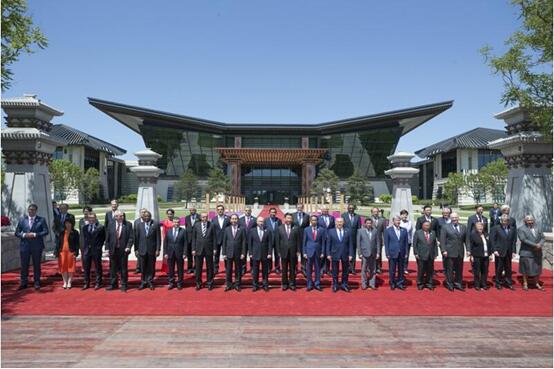 5月15日,“一帶一路”國際合作高峰論壇圓桌峰會在北京雁棲湖國際會議中心舉行,國家主席習(xí)近平主持會議并致開幕辭。這是第一階段會議結(jié)束后,習(xí)近平同外方代表團(tuán)團(tuán)長及嘉賓在雁棲湖國際會議中心前合影。新華社記者 姚大偉 攝