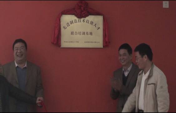 (圖二)黎海波校長(zhǎng)、韋東波主任為先進(jìn)制造技能人才培訓(xùn)基地揭牌